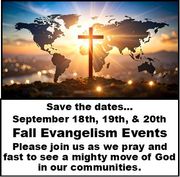 Evangelism Events– September 18th-20th– Save the dates