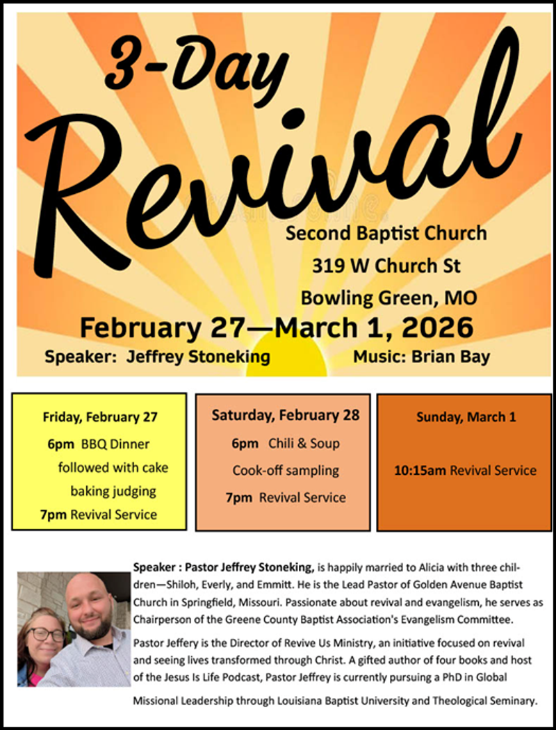 Weekly Community/County-Wide Prayer Gathering– Thursday Mornings– 7:00am- “The Bridge” Coffee Shop - Louisiana, MO