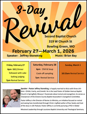 Church Families- If you have a special event coming up at your church and would like it put in the SRBA newsletter or placed on our website, please forward us a flyer. You can send it by mail, e-mail, or just drop it off at the SRBA office. Please have information to us by the second Monday of each month for the following month’s newsletter.