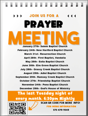 Prayer Meeting- January 27th– 6:30pm-Salem Baptist Church