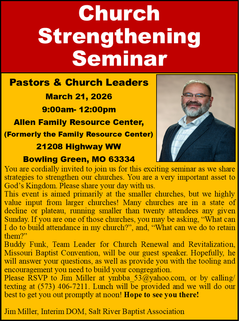Thank you for visiting the Salt River Baptist Association website!